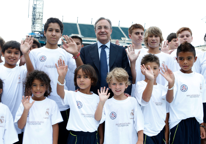Presentación oficial del lanzamiento de las escuelas en Estados Unidos por parte de Florentino Pérez y de jugadores del primer equipo del Real Madrid, en Filadelfia.