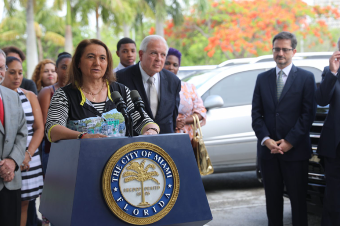 Entrega de la llave de la Ciudad de Miami a la Presidenta por la gran labor social en la Comunidad de Miami.